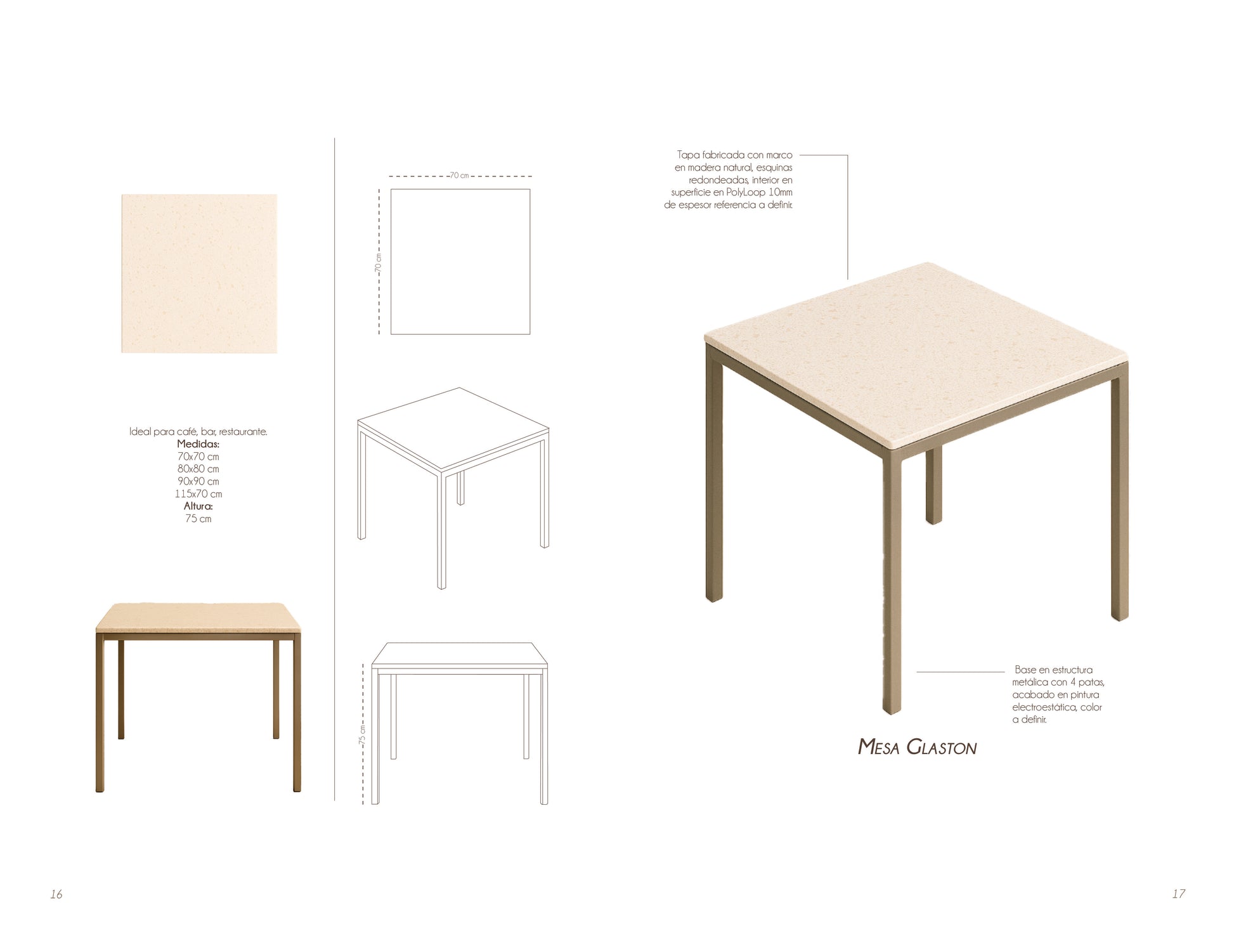Estabilidad clásica con un giro de vanguardia. El diseño de cuatro patas de la mesa Glaston ofrece una solidez innegable y una estética industrial-chic que se adapta sin esfuerzo tanto a amplios comedores de restaurantes como a salas de reuniones corporativas.
